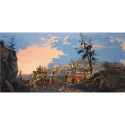 Papier peint Panoramique représentant la victoire de Napoleon à Austerlitz. Cette bataille oppose la Grande Armée de l'Empire commandée par Napoléon Ier, sacré empereur des Français un an auparavant, aux troupes Autrichienne et à l'armee russe.